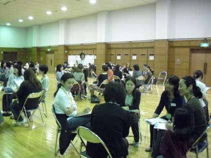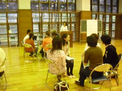 互いに記入した内容を紹介し合います。話し合っていると、自分では気付かなかったことが見えてきたり、欠点だと思っていたことも裏を返せば長所に見えてきたり…物事は考え方で決まります。「大人もいつも夢を持ち続け、夢の実現に向けて一歩を踏み出すことが大切であり、親が生き生きしていれば子どもも家族も楽しくなりますね。」という渡部校長のまとめで研修会を終えました。研修会に参加した保護者の方々、ありがとうございました。