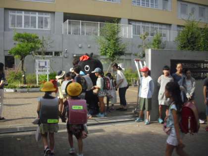 今日もからぴょん、地域の方々とともにあいさつで一日がスタートしました。