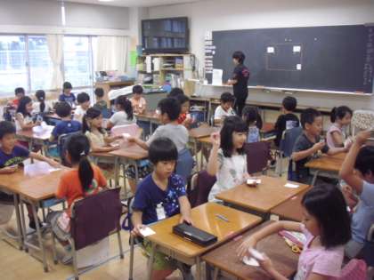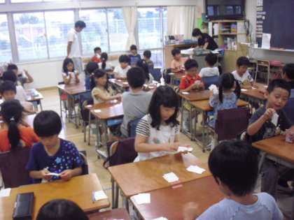 1年生の教室で、カードを用いたゲームの活動を通してどちらの数字が大きいのか理解を深める学習をしていました。みんな楽しみながら、学んでいましたね!