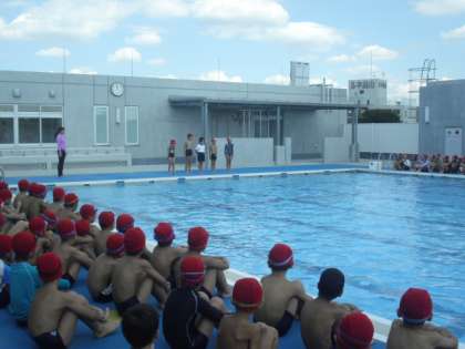 気持ちを伝える礼をして、2年生のプールおさめを終えました。