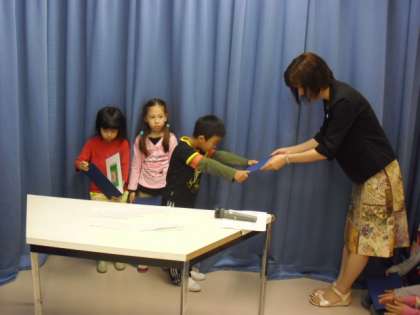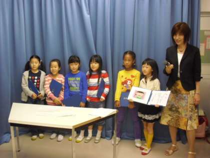 お話の後は、世田谷区歯科医師会が行った低学年対象の「歯の衛生週間の図画ポスター展」に応募したなかから、優秀賞と佳作に選ばれた子どもたちの表彰を行いました。一人一人の作品をテレビの画面で紹介しました。みんなうれしそうでした。