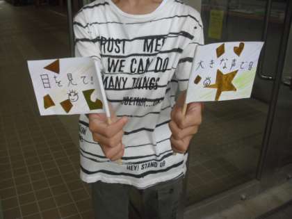 あいさつ隊の5年生があいさつの小籏を作って、あいさつの声掛けをしていました〜。