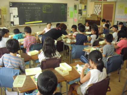 2年生が粘土で、自分のお弁当を作る活動をしていました。