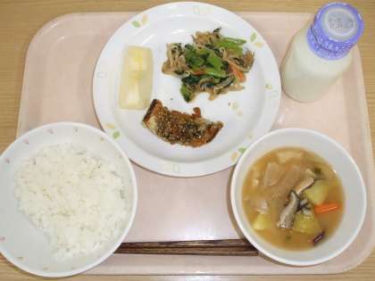今日の「魚の香味揚げ」には、アジを使いました。カリッと唐揚げにしたアジに、砂糖、みりん、しょうゆ、ねぎなどで作った甘辛ダレがかかっています。白いご飯ともよく合う一品でしたね。