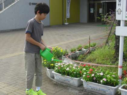 おはようございます。5年生のあいさつの声掛けで迎えられ、今日も一日がスタートしました。花の水やりなど朝の活動が始まりました。いつもありがとう!!