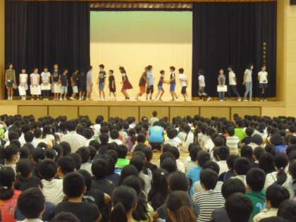 朝は体育館で全校集会、今日はステージの隙間から見えたものや人数を当てるクイズでした。何問正解しましたか? 帰りは行進です。揃う美しさが表れたでしょうか・・・
