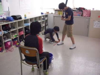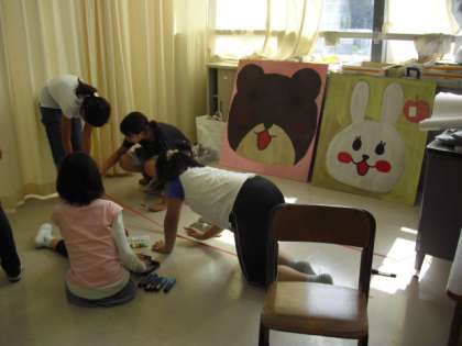 明日の子どもまつりの準備の様子です。これは6年生です。場の設定、説明のリハーサルなど最終準備中です。お店に来たお客さんに楽しんでもらおうとどの学年も張り切っています。