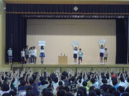 今日の児童集会は図書委員会担当の図書室や本に関するクイズでした。
