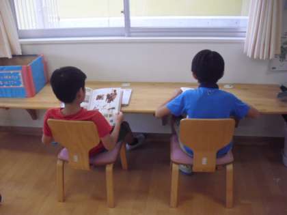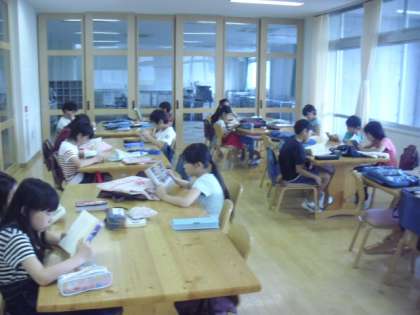 図書室では4年生が読書の時間・・・・みな静かにお話などの世界に浸っています。