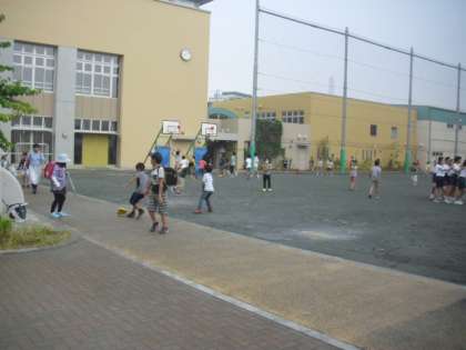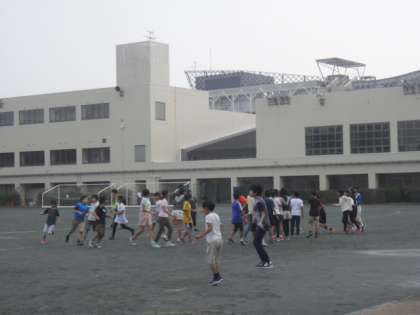 さっそく朝の活動開始〜長縄練習や鬼遊びなどを始めました。