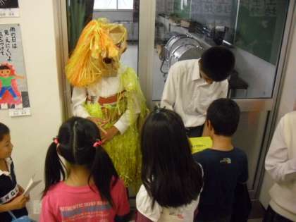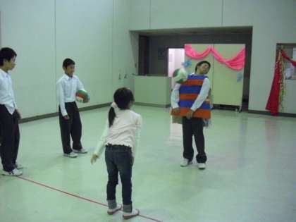 中学生のお店の様子です。いろいろなモンスターとジャンケンをして、全部勝ったらファイナルステージでモンスターをボールでやっつけます。校内に小中学生が自然に行き交い、笑顔で話している姿は、ふれあいに満ちた芦花小中ならではですね。