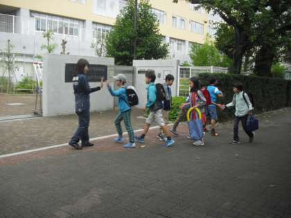 今日も4年生のあいさつ隊が、ハイタッチでみんなをお出迎えです。