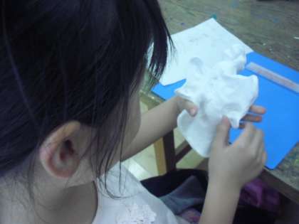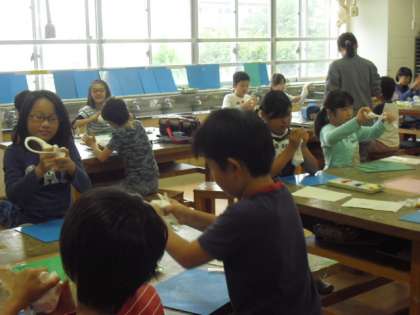 図工室では紙粘土を使った造形活動です。年度を引き伸ばし、ひねり、ちぎったりつまみ出したりしながら、自分のオリジナルキャラクター作りに取り組んでいました〜。どんな小人たちが出来上がるのか、今から楽しみですね。