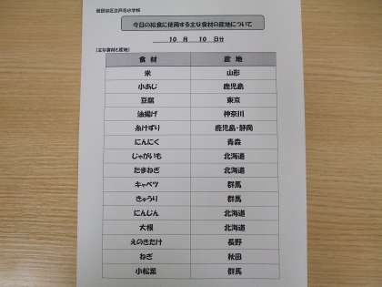 ハッピーマンデーの昨日は「体育の日」でした。元気で強い体をつくるためには、しっかり食事をとることも大切です。今日の小魚料理も、骨ごとバリバリ!みんな残さず食べられたかな〜。