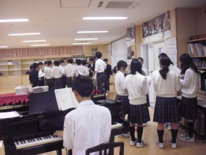 校舎続きの中学校の音楽室から美しい歌声が響いてきました。学芸発表会に向けての歌の練習です。それぞれのクラスで自分たちならではの歌を作り上げていることが伝わってきます。それぞれが活動を通して、「充実感」「達成感」を十分に味わいますように!!