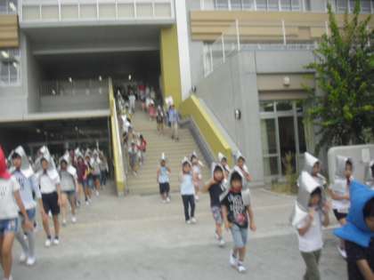 予告なしで朝の時間帯に小中合同避難訓練を行いました。同じ校舎で生活をしている全児童・生徒を安全に避難させるため、毎月の避難訓練は欠かせません・・・