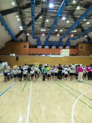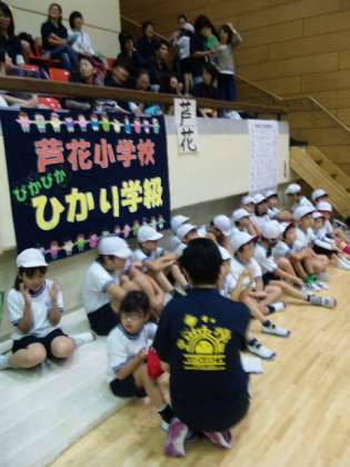 世田谷総合運動場の体育館で特別支援学級の連合運動会が始まりました。ひかり学級のみんなが頑張ります!
