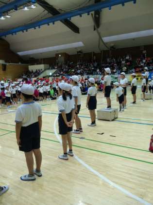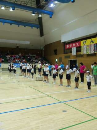 終わりの体操はひかり学級担当、みんなの前でしっかり役割を果たしていました。