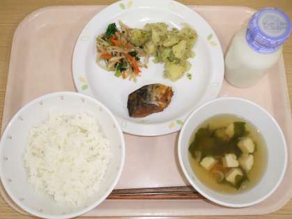 今日は、旬の魚“さば”を「みそ煮」にしました。給食室では朝から、回転釜にさばを並べ、煮崩れないように丁寧に火を入れました。よく味のしみた旬の味を、ゆっくり味わっていただきましょう。
