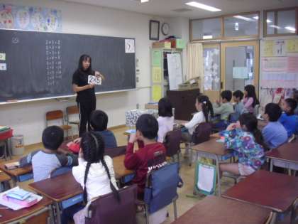 いくつずつ何個分をブロックで置き、確認しながら二の段の唱え方も学習しました。