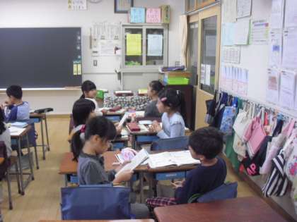 九九を隣同士聞き合って、しっかり唱えられるか確認です。