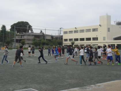 校庭でも6年生が明日の連合運動会に向けて、さっそく長縄やリレーの練習を始めました・・・・