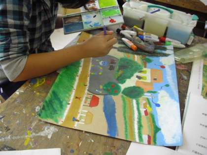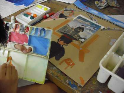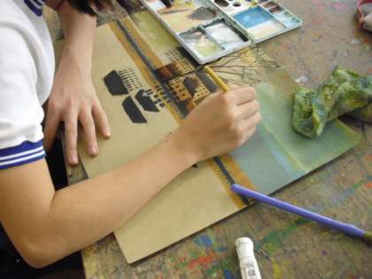 6年生の図工の授業の様子です。「芸術家の心にふれて」という題材です。ゴッホなどの芸術家の絵画の一部を活用したり、取り入れたりしながら、芸術家の気持ちになったつもりで自分なりに表現したいことを描いていきます。なかなか味わい深い作品に仕上がりそうです。