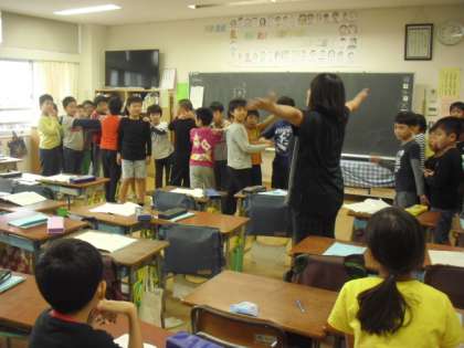 3年生の教室でも、登場人物の魚や、クラゲの動きをみんなで考え、練習していました・・・