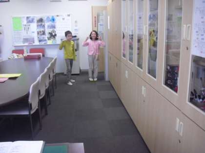青空が広がる朝です。出席表を届けに来る子どもたちが、