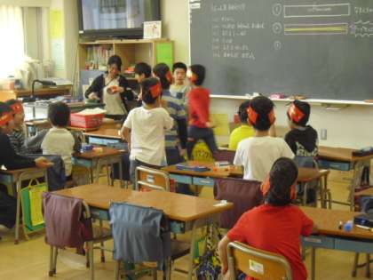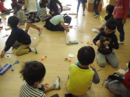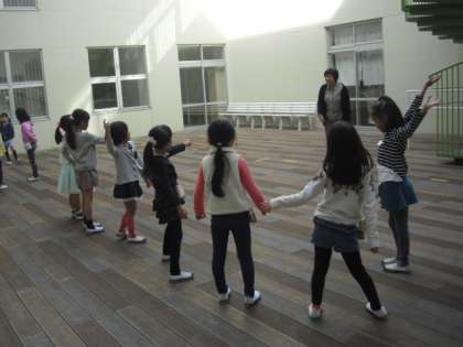 1年生が2階のテラスで、劇の動きの練習をしていました。教室では劇に使うお面作りも・・・わくわくドキドキしながら活動していましたね・・・・。