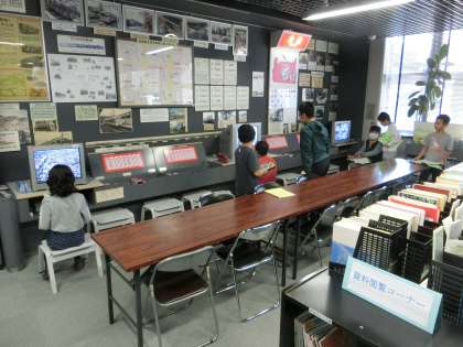 DVD、パネル、展示等の資料を活用し、一人ひとりが自分で設定した学習課題を解決しています。与えられた時間は45分、集中して取り組み、あっという間に終了時刻を迎えた印象でした。