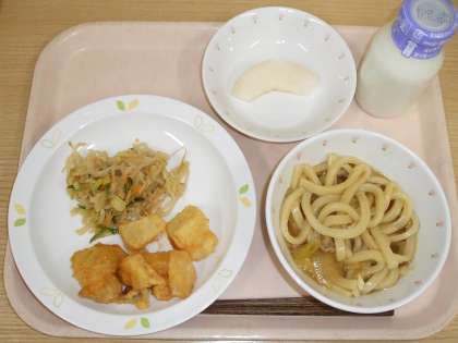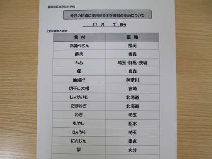 今日は埼玉県の郷土料理給食です。「みそポテト」はじゃがいもの天ぷらに、甘めの“みそだれ”をかけたもので、秩父地方のソウルフードといわれています。