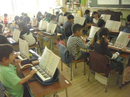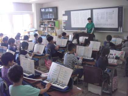 1年生の教室から鍵盤ハーモニカの演奏が聞こえてきました。指遣いに気を付けながら、しっかり演奏していましたね・・・