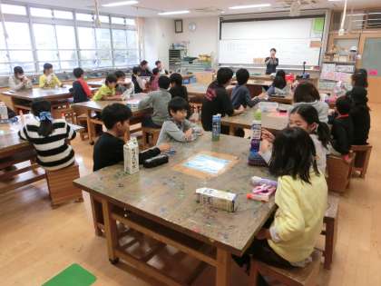 クラブ活動の時間です。芸術の秋にピッタリなクラブをお届けしましょう。工作クラブとイラストクラブの様子です。夢中になって、活動している姿は見ていて気持ちがよいものです。