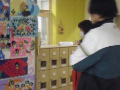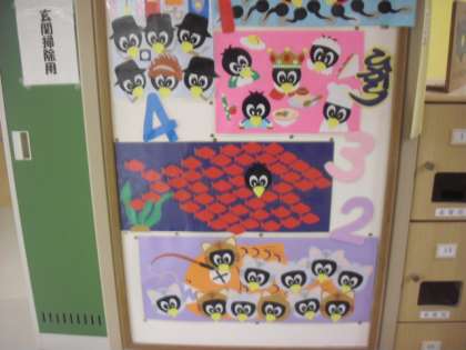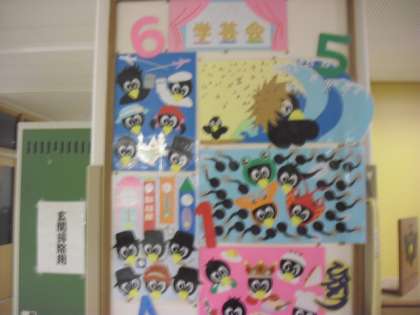靴箱の掲示板が学芸会バージョン芦花ラスたちで装飾されました〜。