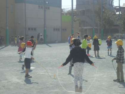 休み時間は青空の下で、今日も短縄跳びに取り組む子どもたちが多かったです。