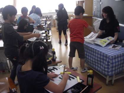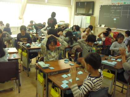 国語辞典を使っての短文作り、教科日本語での百人一首でのかるたとり、毛筆習字の学習です・・・・