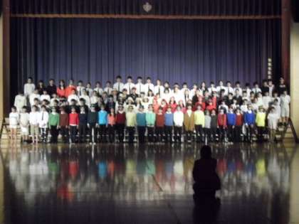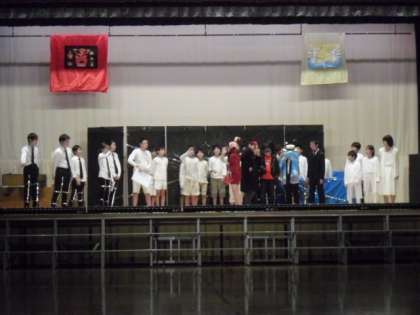 学芸会リハーサル、6年生は劇団芦花のミュージカルです。音響、照明・・自分たちで創り上げた劇です・・・。