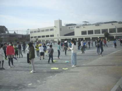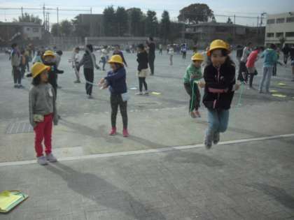 短縄のチャレンジする姿が多い中、一輪車や竹馬の練習に励む低学年の姿も・・・