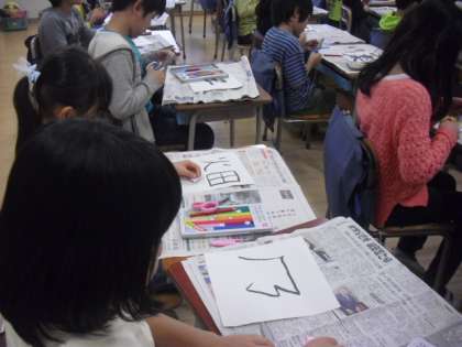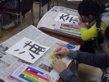 筆で書いた自分の一文字が、すてきな作品になっていきます。