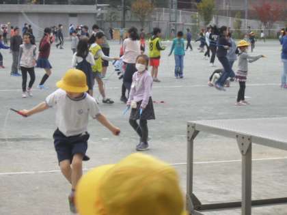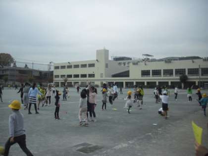曇り空ですが、朝よりたくさんの子供たちが外で活動しています。