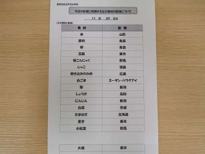 今日の「豚肉と大根のうま煮」には、『せたがやそだち』の大根を使っています。世田谷区内では、いろいろな種類の野菜や果物が生産されています。冬野菜もたくさんあるので、ぜひ家庭でも地場産物を楽しんでみましょう。