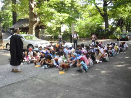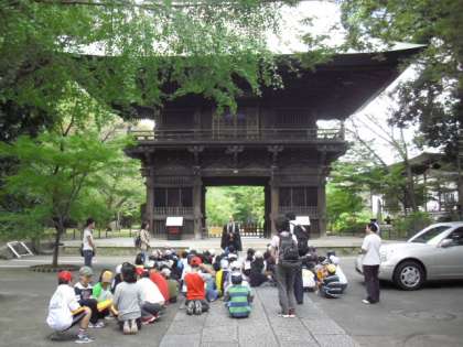 3年生の社会科見学の様子です。世田谷区内めぐりで最初に訪れたのは、九品仏浄真寺です。正式には「九品山唯在念仏院浄眞寺」といい、江戸時代初期、四代将軍徳川家綱公の治世延宝六年(1678)に創建されました。子どもたちは住職さんのお話をメモを取りながら聞いています。