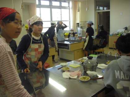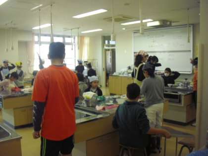 家庭科室では鍋を使ってご飯を炊く学習です。