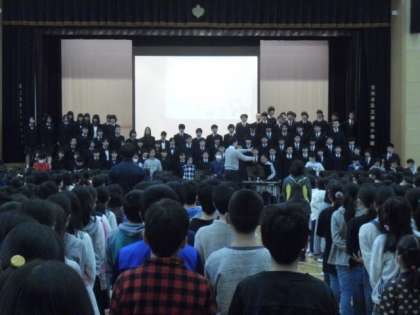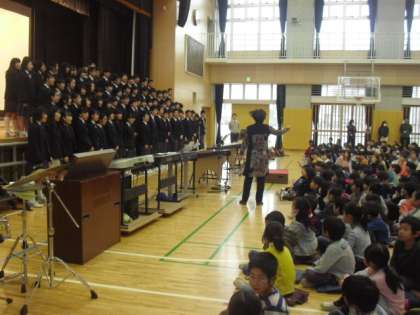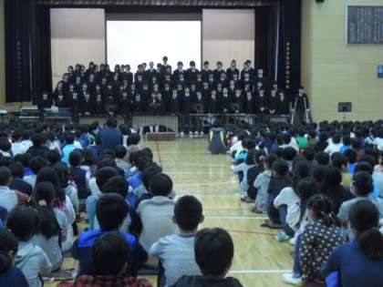 最後に中学生と小学校の先生方での合唱を小学生に披露しました。