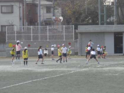 4年生が校庭で体育の学習です。ボールをゴールにパスをつないで運んだら得点になる、ポートボールを試合を試合形式で行っていました。しっかりパスすることができましたね・・・・