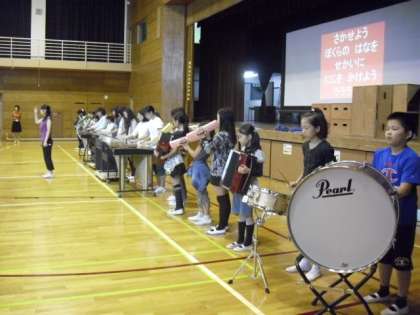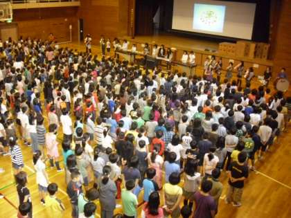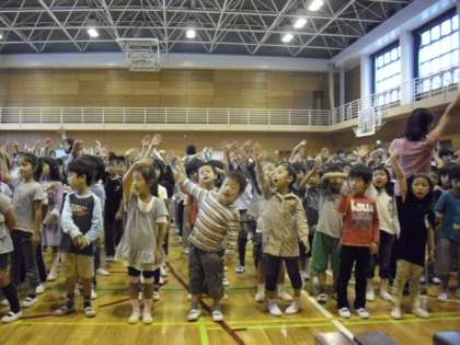 朝の音楽朝会の様子です。前回に引き続き「世界中の子どもたちが」を振り付きで歌いました。さらに高学年は音楽の時間に違うパートを練習し、二部合唱となりました。前回の取組をさらに発展させて、全員で歌う楽しさを共有しました。
