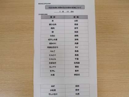 今日は「鏡開き」ということで、給食でも「白玉雑煮」をいただきました。「雑煮」は地域や家庭によって、さまざまな違いがありますね。みなさんはどんな味付け・具材の雑煮が好きですか?