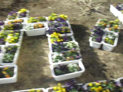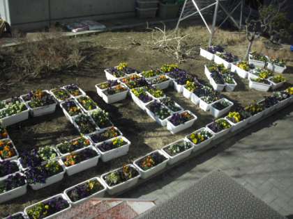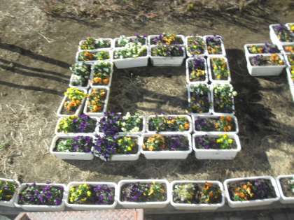 事務室前の場所に栽培委員会の人たちが植えたプランターをロカ小の形に置きました〜