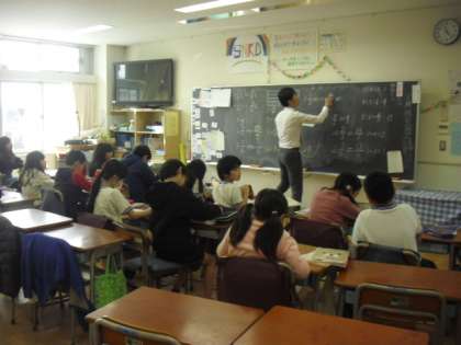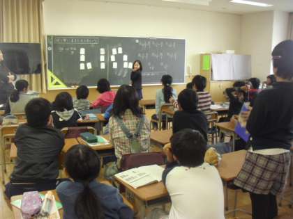 4年生の習熟度別指導です。仮分数、帯分数の関係をしっかりと理解する場面です。